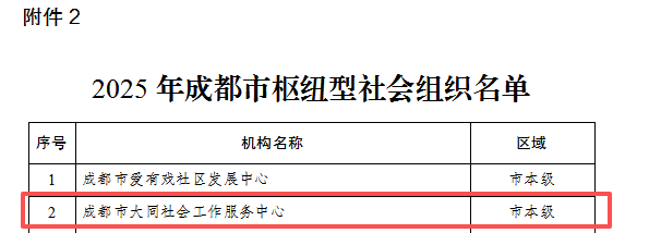 同同喜报 | 双喜临门!成都大同社工荣膺2025年成都市品牌性、枢纽型社会组织!