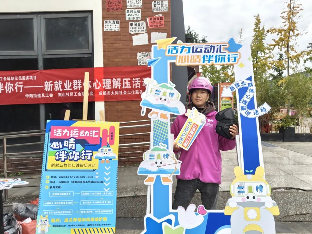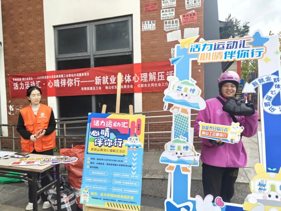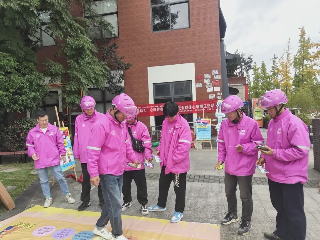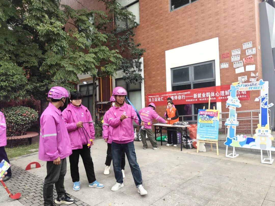 核心通关环节亮点纷呈,四大趣味项目接连开展,让参与者在互动竞技中实现身心解压。随着热身结束,四大趣味闯关项目依次展开,现场氛围持续升温。鼓韵同心·协作颠球体验中,配送员们共同紧握同心鼓绳索,在“一、二、三”的节奏呐喊中协作颠球,即便中途球落地,大家也迅速调整状态重新尝试。工作人员在通关后引导分享:“同事间的节奏配合就像工作中的互助,心往一处想就能应对压力”,让大家深刻体会到协作的力量。
