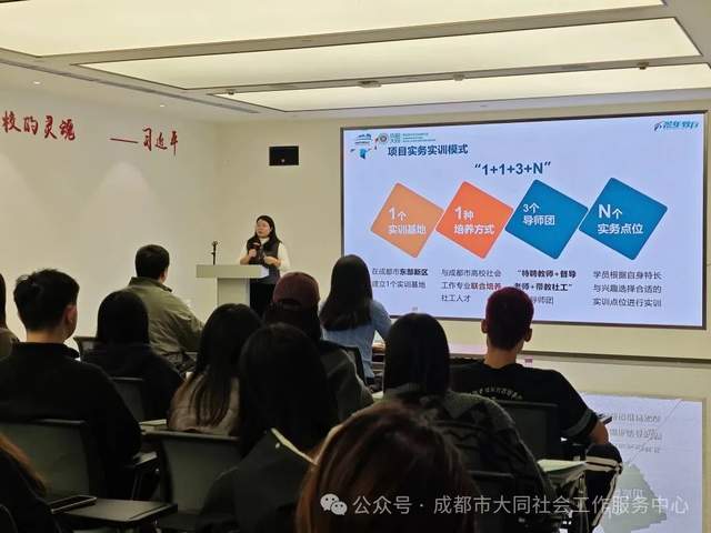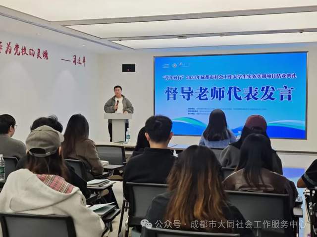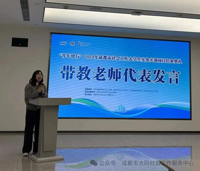 11月7日,由成都市社会工作协会支持、成都东部新区社会工作部、西华大学联合申报、成都市大同社会工作服务中心承办的成都市大学生实务实训项目在成都东部新区西部金融中心党群服务中心举办了学员结业典礼,督导老师、带教老师、学员代表等40余人参与了本次活动。