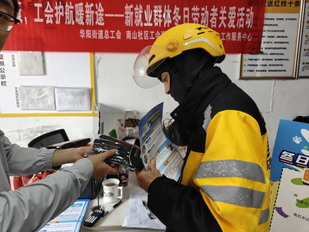 此次活动以雪中送炭的实际行动,将工会与社区的关怀精准送达新就业群体身边,既解决了冬季户外工作的迫切保暖需求,又搭建了诉求沟通的便捷桥梁。从实用物资的精准适配,到休息资源的有效链接,再到防护知识的贴心普及,每一个细节都彰显着对新就业群体的尊重与关爱。未来,华阳街道总工会将联合南山社区工会联合会持续关注新就业群体的季节性生活与工作需求,