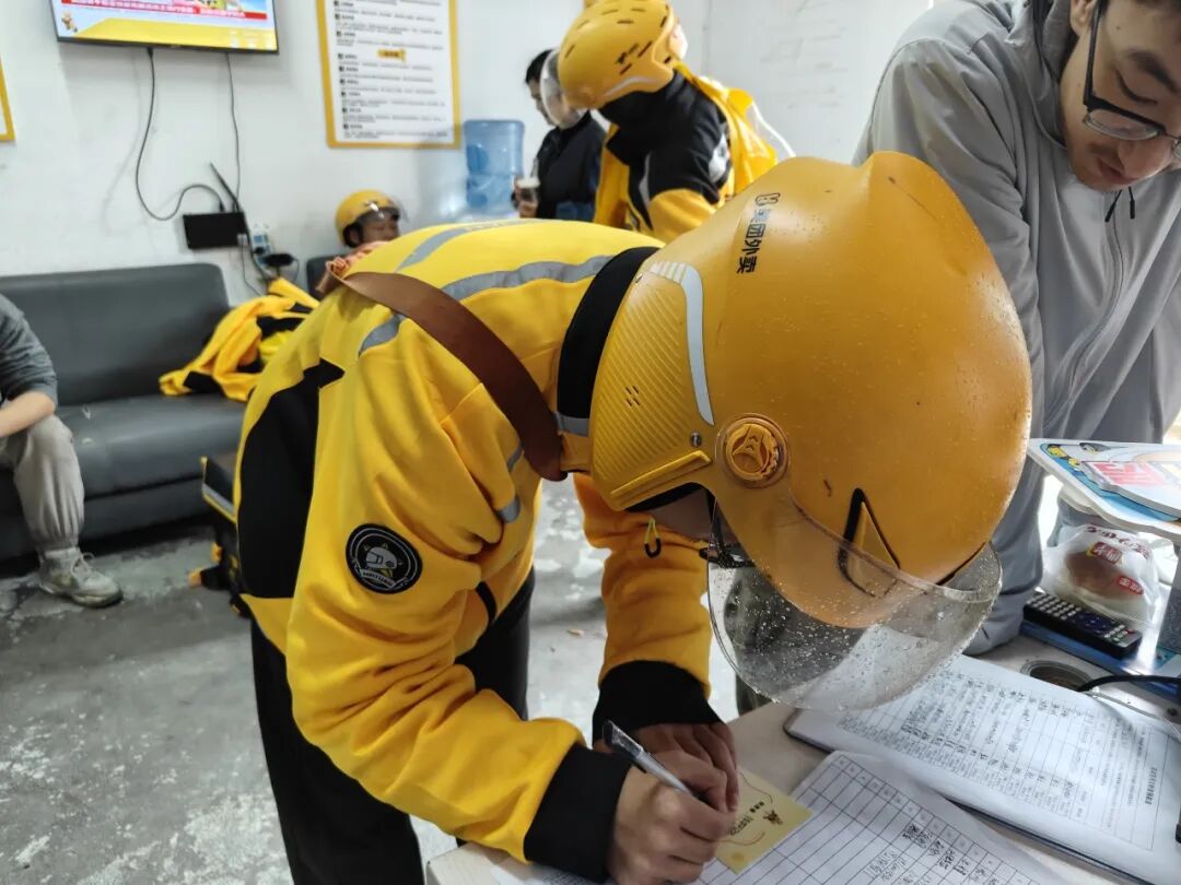 发放物资的同时,工作人员同步开展双向服务:一方面向参与者细致介绍保暖休息区的空调、热饮机、应急保暖物资等配套设施,发放暖新地图引导他们寒冷时段进店歇脚;另一方面递上冬季防冻指南,用通俗的语言讲解手部、耳部冻伤预防要点及雨雪天气骑行安全技巧,现场演示简单的冻伤应急处理方法。交流中,工作人员还认真倾听了劳动者们的实际需求,有骑手提出“希望驿站能增加雨衣、雨靴,挡风被等保暖物资储备”相关诉求均被详细记录,为后续服务优化提供依据。